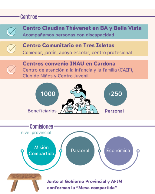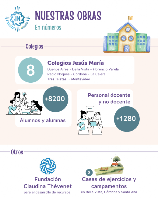 La Fundación Claudina Thévenet nació en 1995 para dar apoyo al Centro Claudina Thévenet, un centro educativo terapéutico fundado el año anterior para dar apoyo y acompañamiento a los niños, niñas y adolescentes con discapacidad en su inclusión escolar. Después de la crisis socioeconómica de 2001, se amplió el objeto social de manera tal que hoy en día incluye a todas las obras socioeducativas de la Congregación de Religiosas de Jesús María en Argentina y Uruguay (incluyendo colegios, un centro comunitario, centro de niños, club de jóvenes y actividades misioneras y pastorales). Actualmente, continuamos trabajando para que las personas crezcan con dignidad y con un proyecto de vida, que las lleve a ser agentes de transformación social, principalmente en contextos vulnerables.